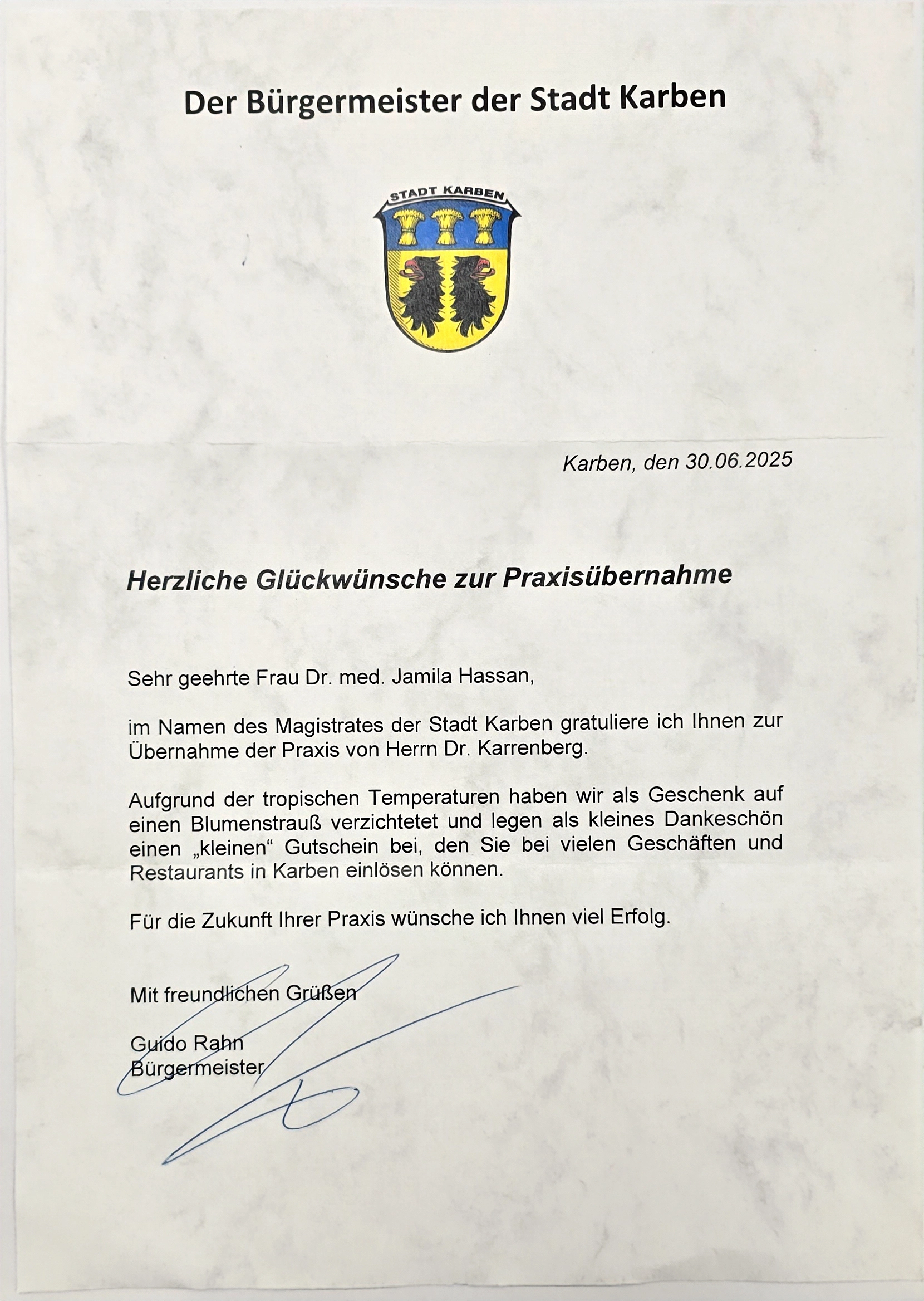 Glückwünsche durch den Bürgermeister